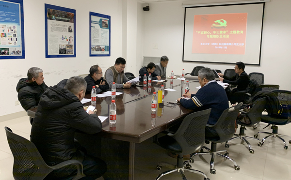 2019年12月6日,科技园党支部召开“不忘初心、牢记使命”主题教育专题组织生活会,会议由支部书记任晓彧主持。