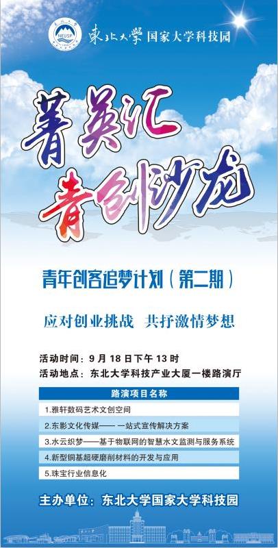 东北大学国家大学科技园举办“菁英汇·青创沙龙——青年创客追梦计划(第二期)”活动,希望通过本次活动帮助更多富有激情和梦想的创业者,获取创业管理、法务、金融等方面专家的指导,应对创业过程中遇到的各种问题与困难、提升创新创业综合能力,欢迎青年创客朋友们踊跃参加!