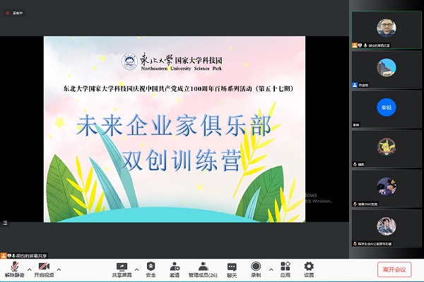 11月26日,东北大学国家大学科技园发挥创新创业人才培养核心功能,在科技产业大厦105会议室开展 “未来企业家俱乐部双创训练营”活动。大学科技园相关工作人员、未来企业家俱乐部成员和青年创客近30人参加活动,活动在线上举办。