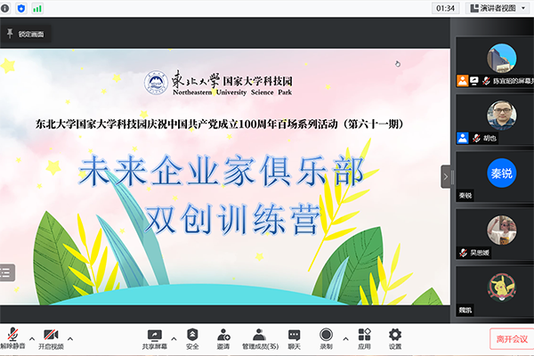 12月8日,为进一步支持学生创新创业,鼓励学生投身创业实践,东北大学国家大学科技园举办“未来企业家俱乐部双创训练营”活动。本期活动在线上进行,大学科技园相关工作人员、未来企业家俱乐部成员及东北大学有创业意愿的学生们参加活动。