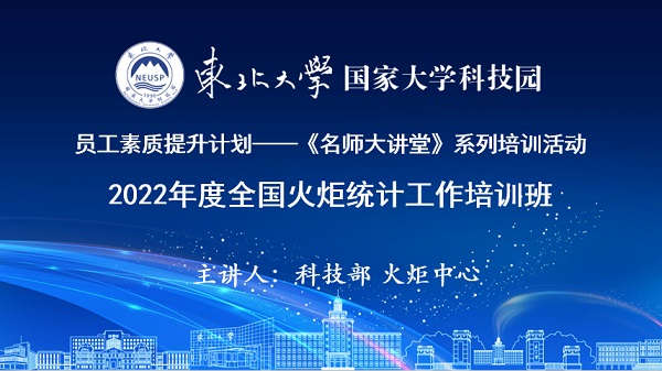 为加强大学科技园火炬统计队伍建设,提升火炬统计人员业务能力,扎实做好大学科技园科技创新发展服务工作,东北大学国家大学科技园于2022年12月29日-30日在科技产业大厦105会议室举办员工素质提升计划——《名师大讲堂》系列培训活动。会议由科学技术部火炬高技术产业开发中心组织。培训会议以线上方式举行,大学科技园相关部门人员参加了会议。
