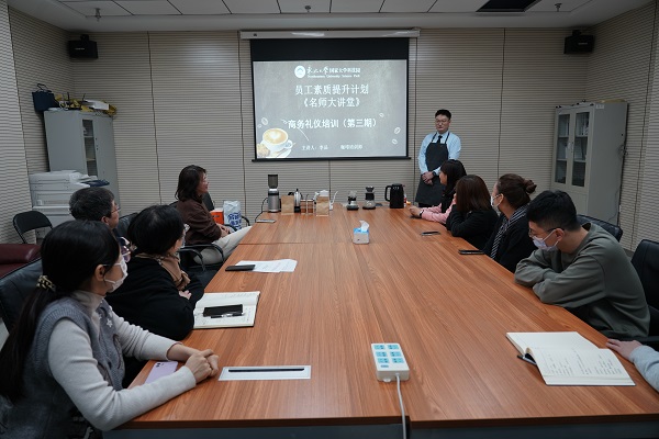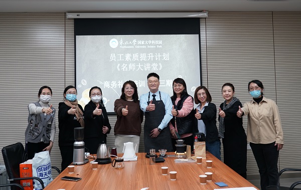 为庆祝第113个“三八”国际劳动妇女节,丰富员工业余生活,关爱员工心理健康,提升生活幸福指数,3月8日,东北大学国家大学科技园在科技产业大厦102会议室举办员工素质提升计划系列活动《名师大讲堂》——商务礼仪培训(第三期)。本次活动邀请业内资深培训师李品老师带领大家一起探索“咖啡的世界”,品味咖啡文化、悦享健康生活。大学科技园全体员工参加了培训。