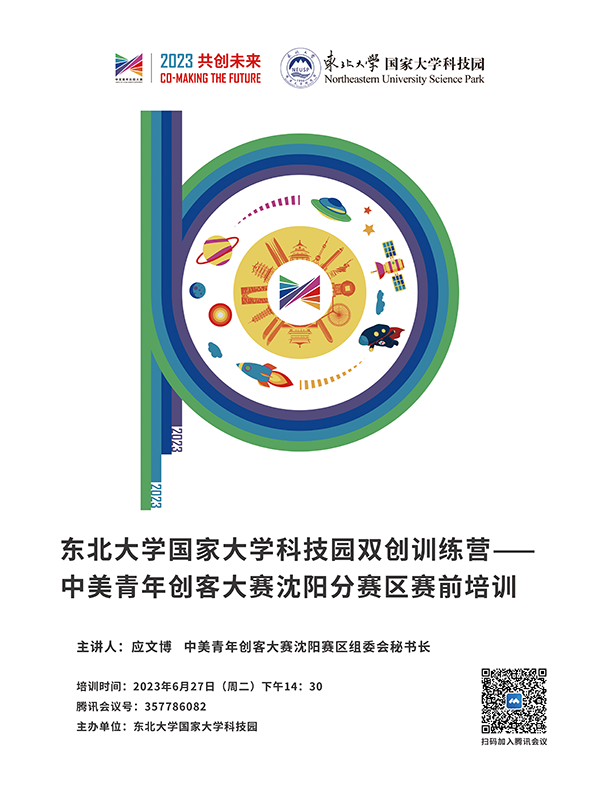 东北大学国家大学科技园双创训练营——中美青年创客大赛沈阳分赛区赛前培训活动定于6月27日(周二)下午14:30举行,欢迎参加。