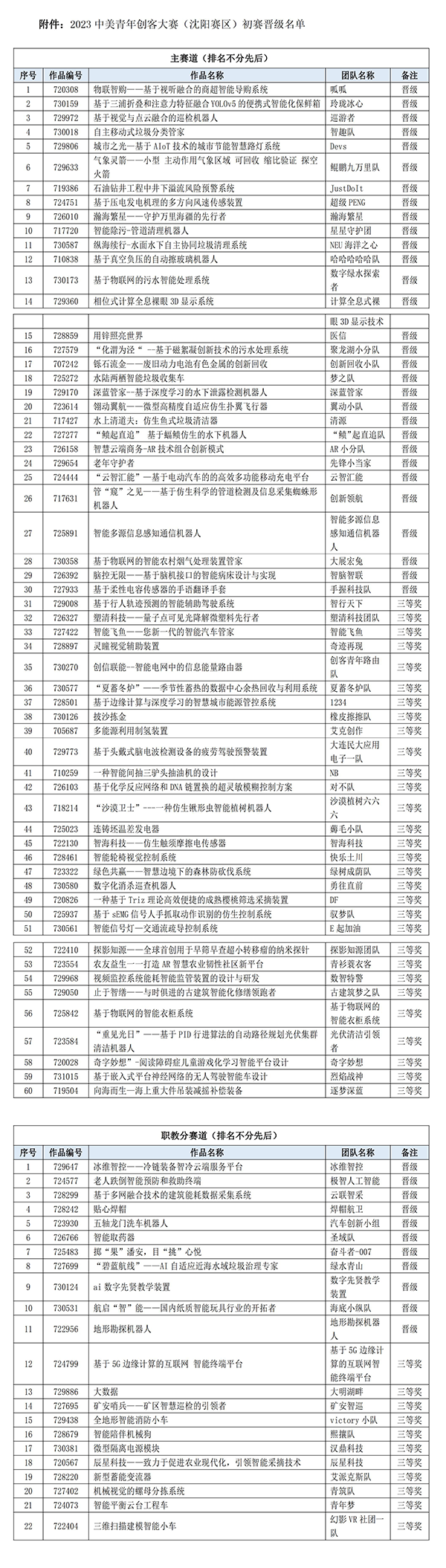 2023中美青年创客大赛沈阳赛区初赛由东北大学主办,东北大学国家大学科技园承办,共有来自62所学校的1510人,346支团队参与其中。经专家评审,角逐出60支主赛道队伍、22支职教分赛道队伍晋级沈阳分赛区决赛。名单附后。