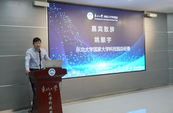 姚顺宇在致辞中表示,东北大学国家大学科技园致力于发挥市场化功能和专业化平台作用,打造了双创训练营、菁英汇·青创沙龙、“科技园杯”创业大赛等特色鲜明的双创系列活动,秉持“以赛促创、以赛促孵”的理念,筛选并选拔校内外优质师生创业项目,以大赛为载体,推动创业实践;重点发展大学生创业基地、校友创业基地、师生共创实践基地等双创平台,集聚社会创新资源,积极构筑“创业前-创业苗圃-前孵化器-加速器-后孵化器”的创业创新服务链,不断提升科技成果转化率和师生共创项目落地率。他欢迎东北大学广大师生选择大学科技园作为创业实践“第一站”。