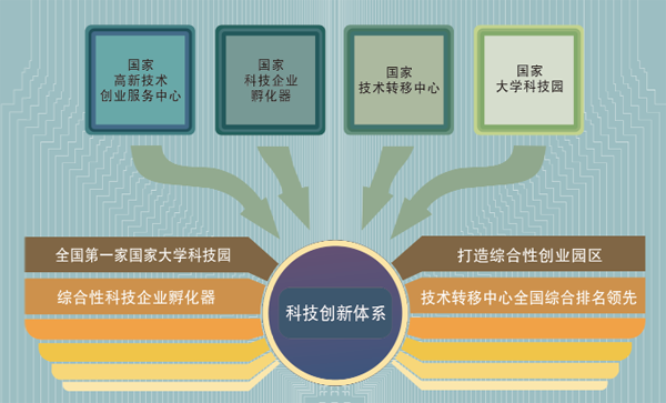 东北大学国家大学科技园经过长期的探索和实践,形成了“科技园、创业园、产业园”一体化协同发展模式,探索了依托东北大学科技、人才、校友资源建设科技成果转化综合改革试验区的模式,打造了科技园区、创业苗圃、孵化器、众创空间、技术转移中心平台及产业园区的全链条科技成果转移转化体系,搭建了“科技+金融、科技+服务、科技+人才”的综合服务平台。